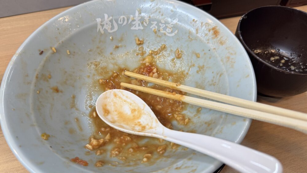 俺の生きる道のトマト汁なしは、にんにくが効いたトマトソースがワシワシ麵に絡んで美味しいイタリアンな二郎系でした!