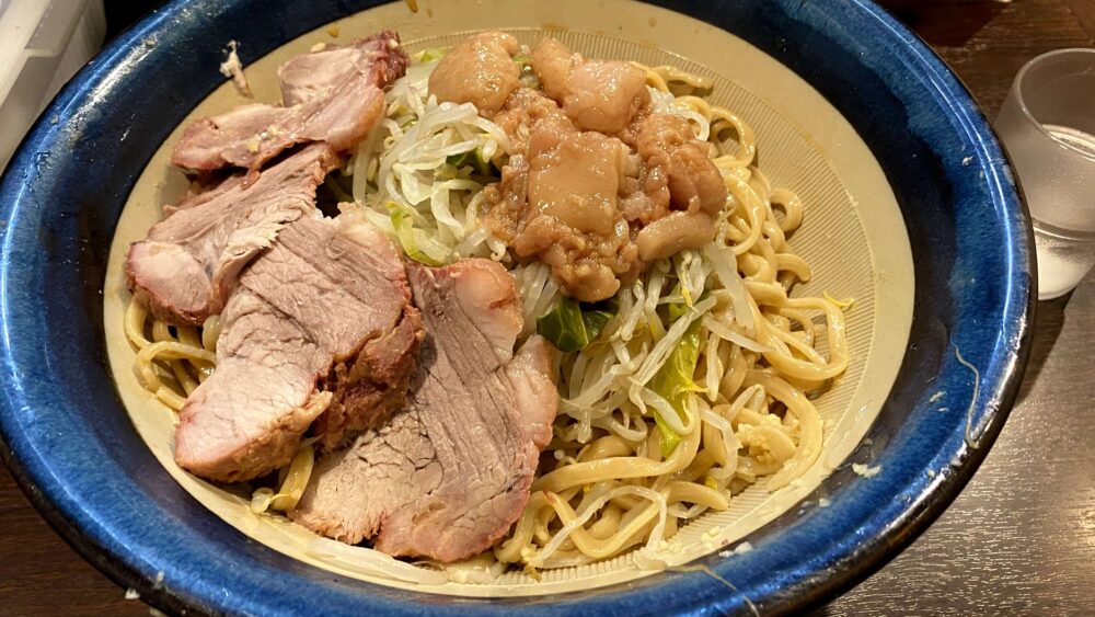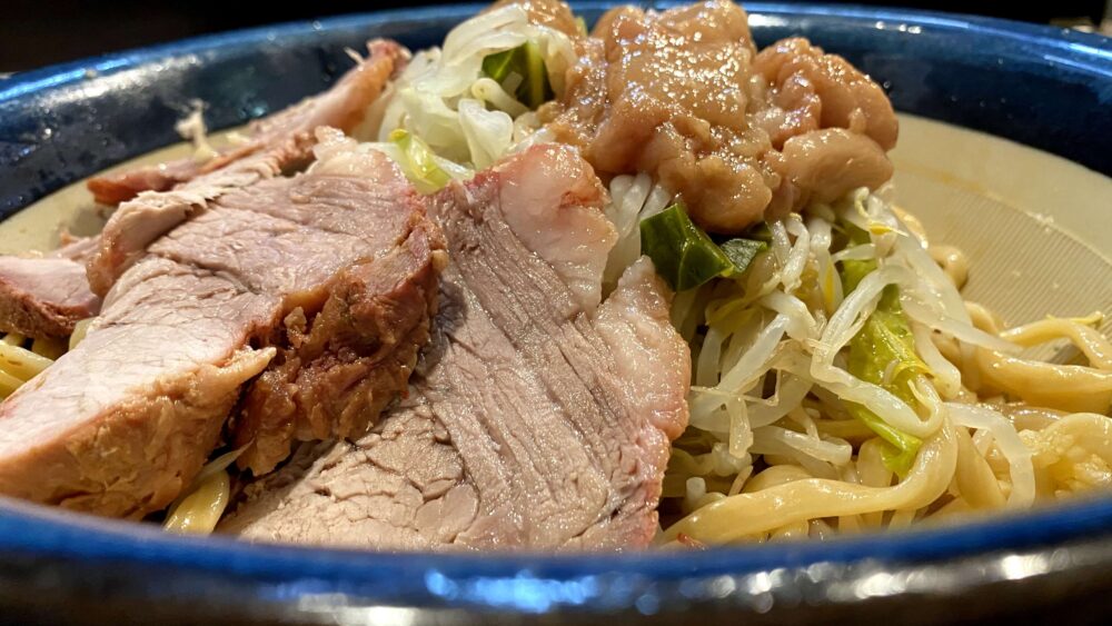 ラーメン 二郎 二郎系 インスパイア ピコピコポン 高田馬場 早稲田 自家製麺 太麺 チャーシュー 豚 ニンニク 野菜 あぶら からめ ましまし ニンニク入れますか? 全マシ