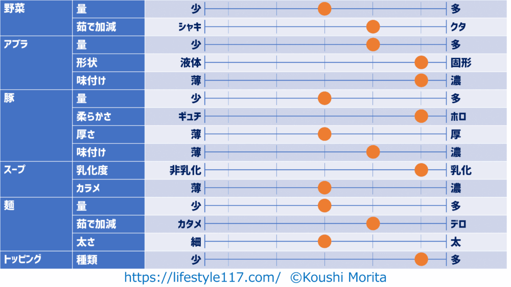 私は原則ニンニクを入れない(妻に怒られるので)ため、項目からニンニクは除外しています。