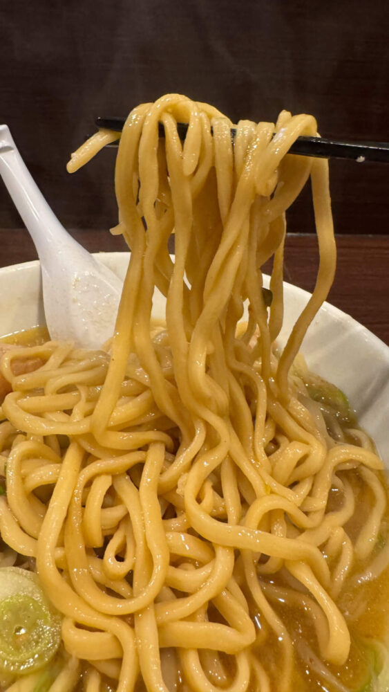 ▲麺にカレースープが絡んで旨し。ズバズバすすれてしまい、味変要らず。