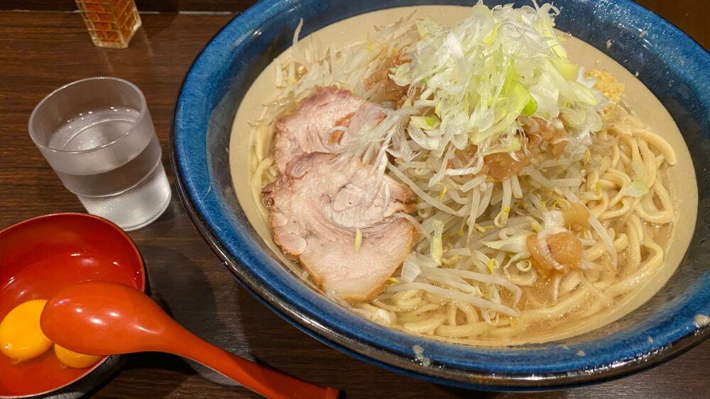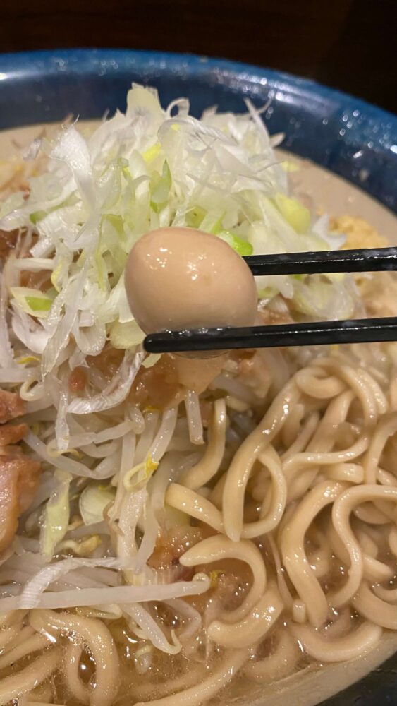 「ネギ油の塩ラーメン+麺増し600g+生玉子W+生姜+うずら」を実食!