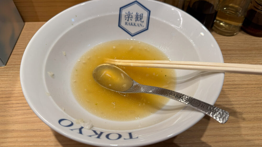 ▲スープは塩味と旨みがあります。お酒を飲んだ身体に染み渡る美味しさ。
