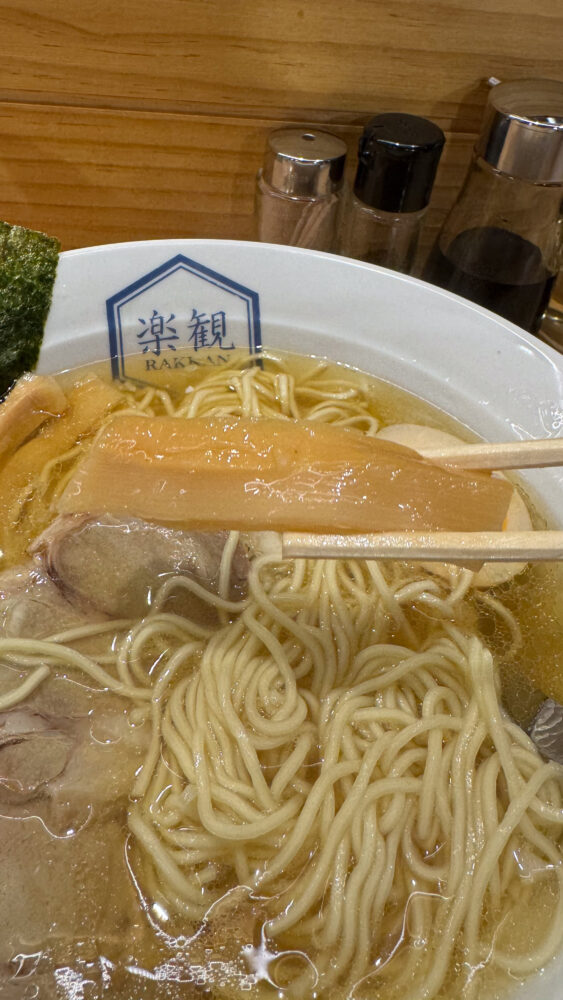 キレイめな醤油や塩のラーメンが美味しい「ラーメン楽観」。