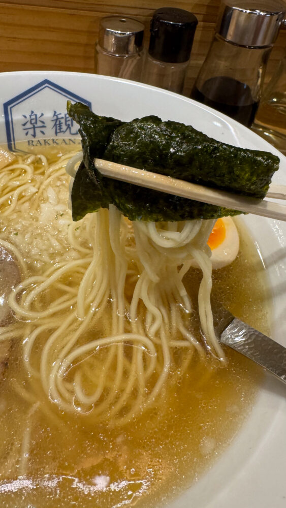 ▲海苔で麺を巻いて食べても良き。海苔の磯感と塩スープが合わないわけがありませんね。