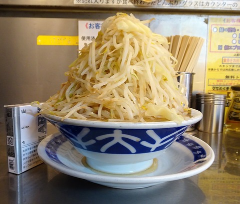 ▲二郎系ならではの黄色と黒の警告色の外観。「ニンニク入れますか?」のメッセージも直球です(笑)
