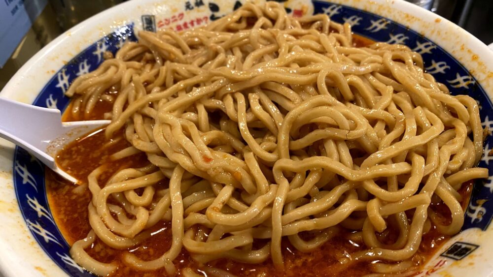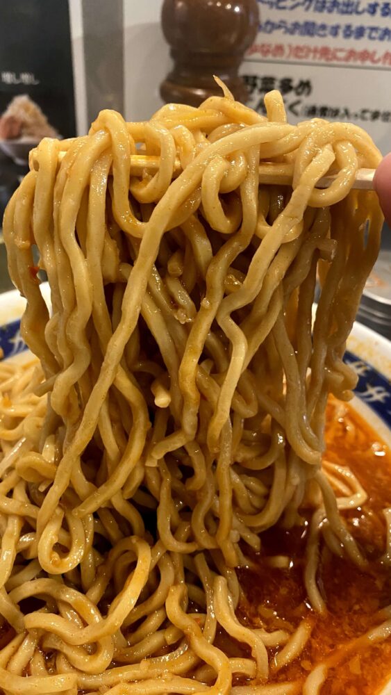 麺は噛むと小麦の風味も強めで、インパクト強いスープに負けない美味しさです。