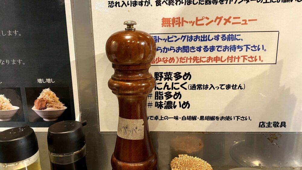 ▲二郎系ならではの黄色と黒の警告色の外観。「ニンニク入れますか?」のメッセージも直球です(笑)