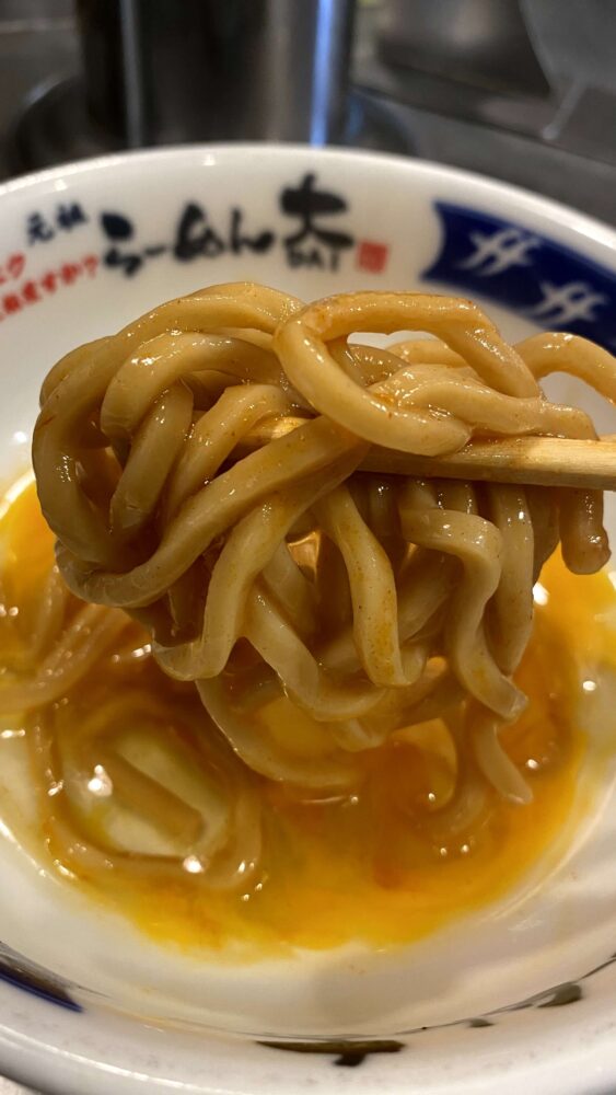 スープに負けないムチ感強めな麺をすする!