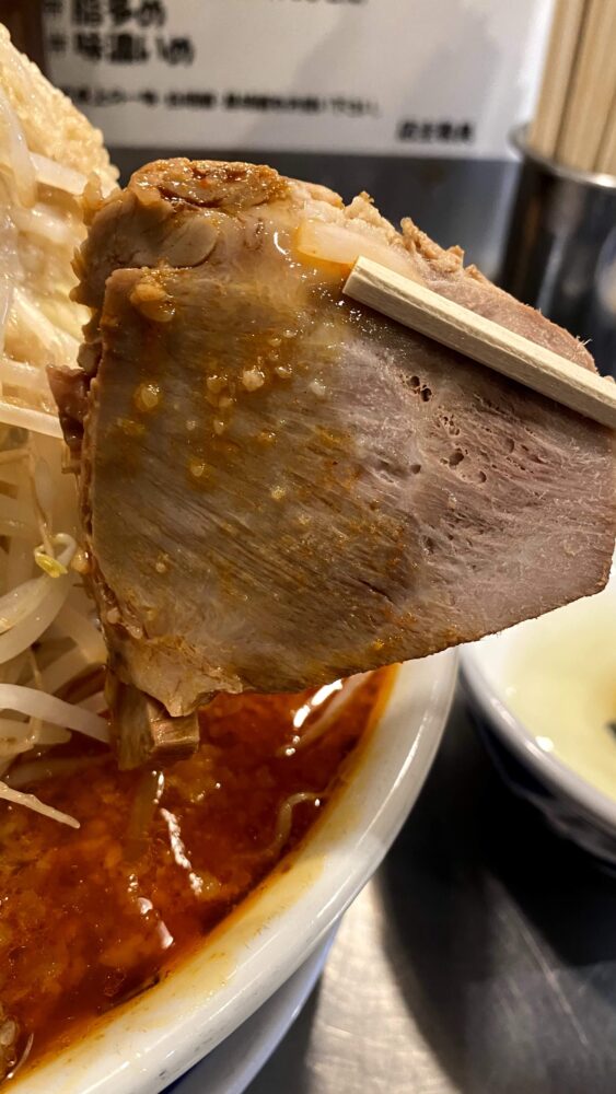 ▲二郎系にしては薄目。ギュチ気味なチャーシュー。