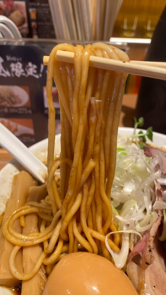 ▲麺は加水率高めのツルモチ食感。特盛で2玉あるので食べ応えバッチリ!
