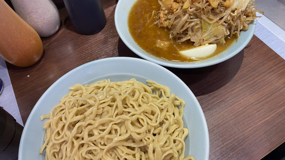 「ラーメン普通(ちょいヤサイちょいアブラ)+つけ麺変更券(魚豚つけ麺)」を実食!