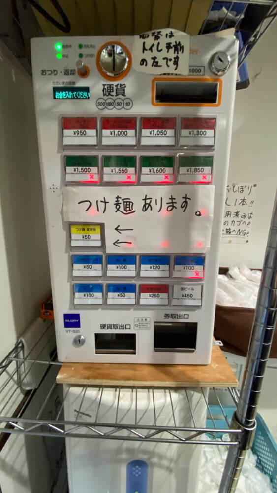 つけ麺系は全てつけ麺変更券を購入。※つけ麺→何も言わずにスタッフへ
