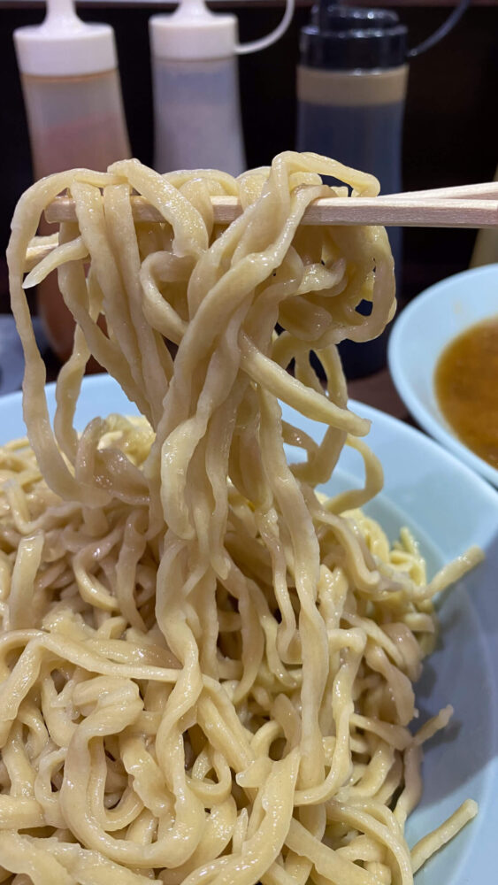 ▲麺は水に締められてパキポキ食感。そのまま食べても美味しいです。