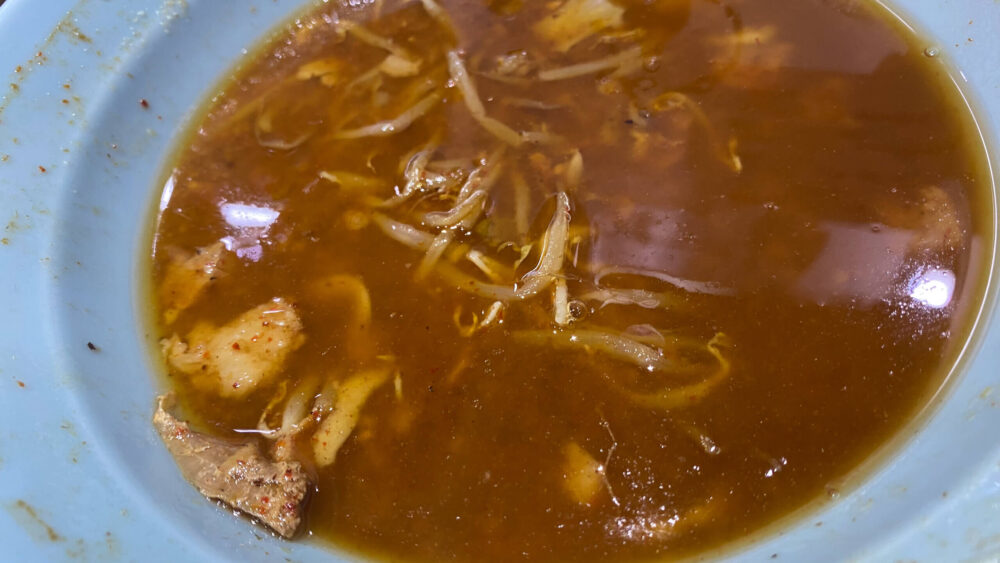 ▲終盤は卓上のお酢で酸味を食欲リセットしラストスパート!ちょっと酸辣湯みたいな味わいで美味しい。