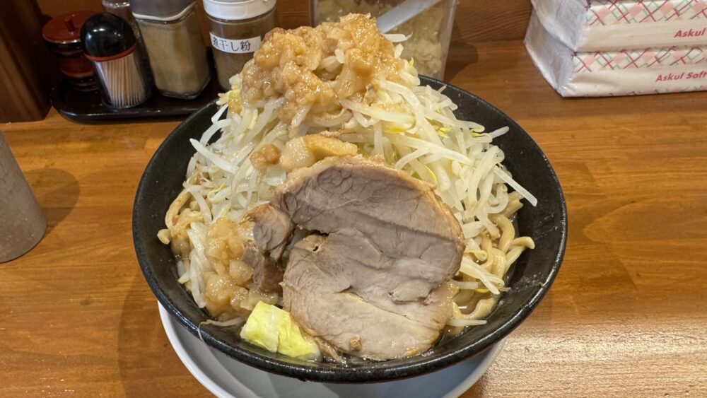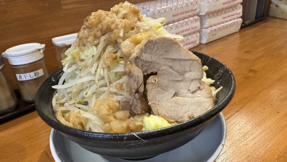 「大ラーメン(野菜マシ背脂マシ)」を実食!