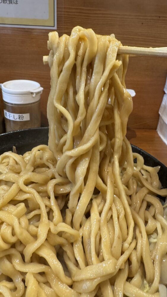 ▲麺は、ワシワシ食感。旨味のある乳化スープをまとって旨い。