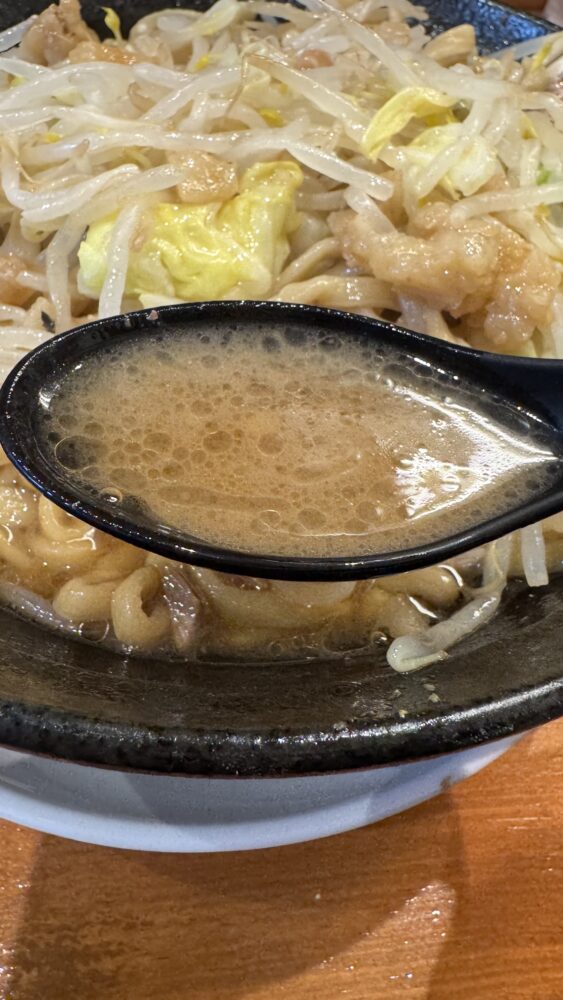 ▲スープは、乳化気味で豚の出汁感があって美味。