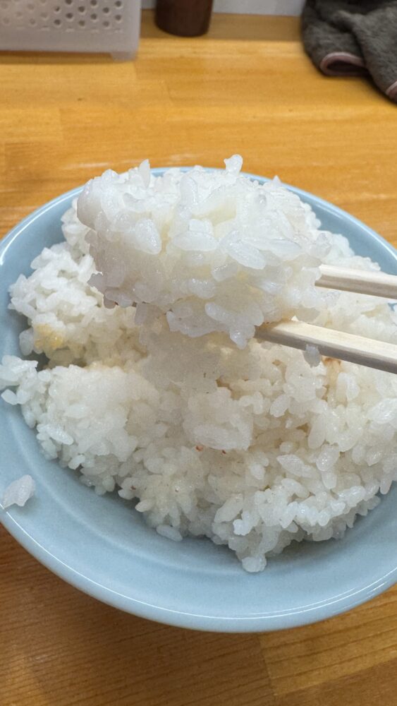 ▲麺の前に、たまらずライスをかけ込まざるを得ないです。控えめに言って最高。