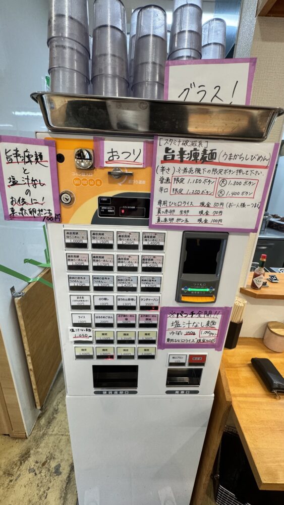 レギュラーメニューは鯛出汁ベースの塩や醤油らーめん、昆布水つけめんですが、期間限定メニューの旨辛痺麺(うまからしびめん)をSNSで発見。