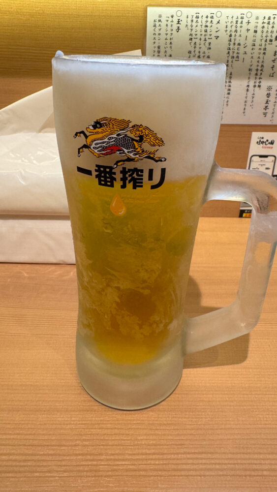 ▲生ビールからの提供。この日は気温が高い中、娘たちの運動会の応援だったのでジョッキまでキンキンに冷えていて最高に美味しかったです!