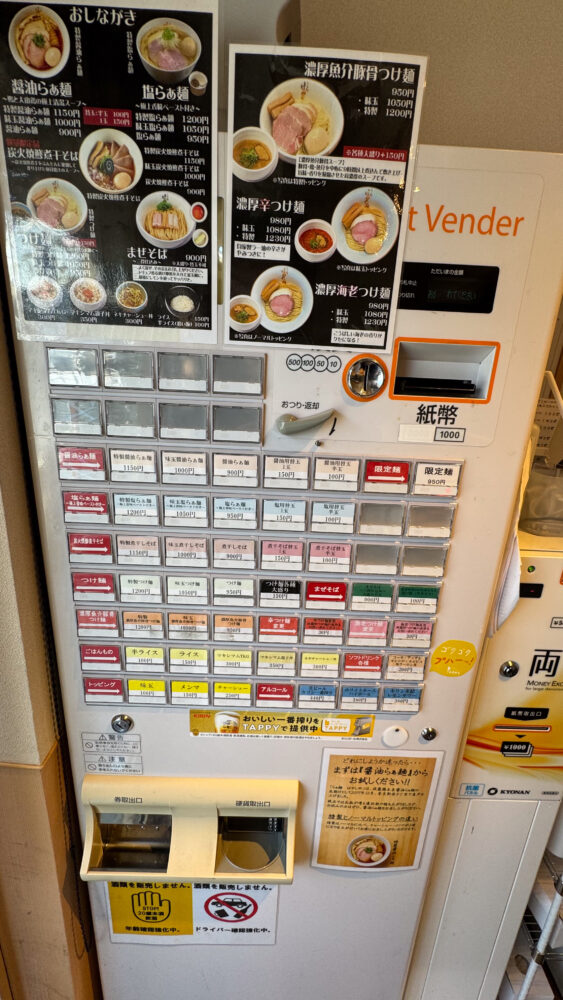 ▲食券機で注文します。両替機が隣にあるのがありがたいですね。