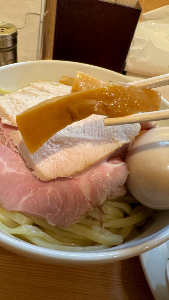 また、特製にすると、低温調理された豚・鶏のチャーシュー、極太メンマ、濃厚な味玉といったトッピング陣がめちゃ豪華になるので、おすすめですね。