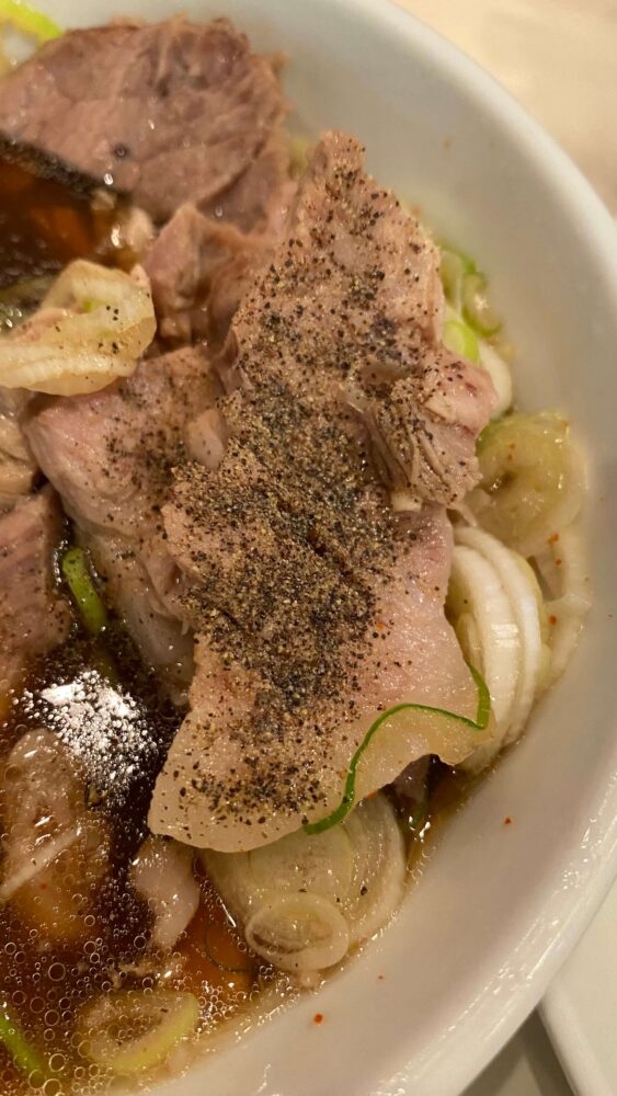 ▲後半は卓上の塩コショウでチャーシューのパンチ力をアップ!けっこうチャーシューの量が多いので味変で最後まで美味しく頂けます。