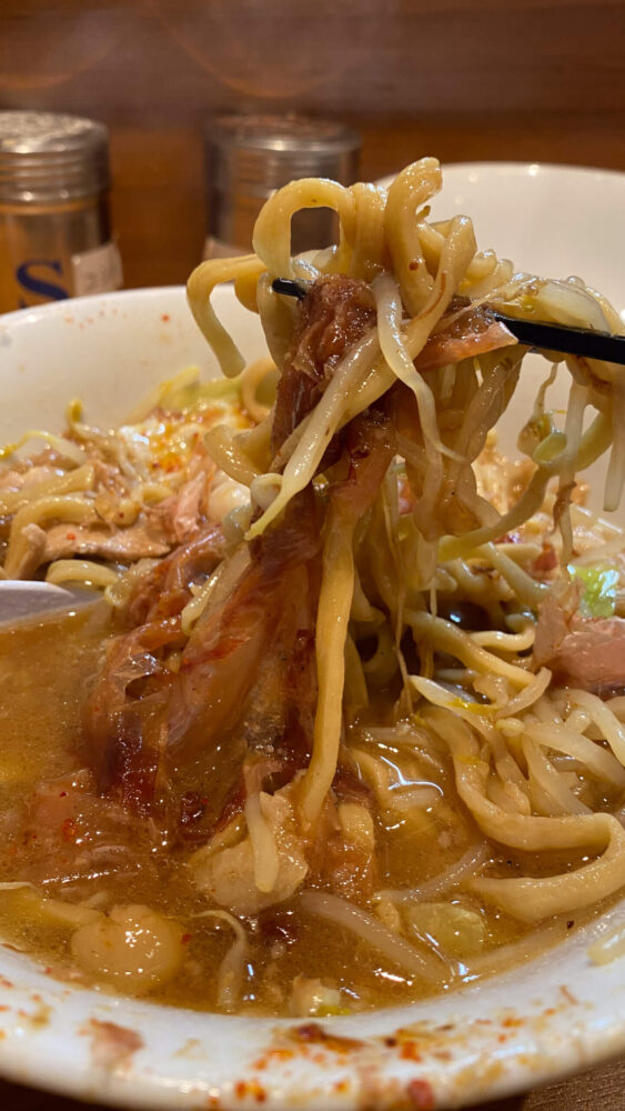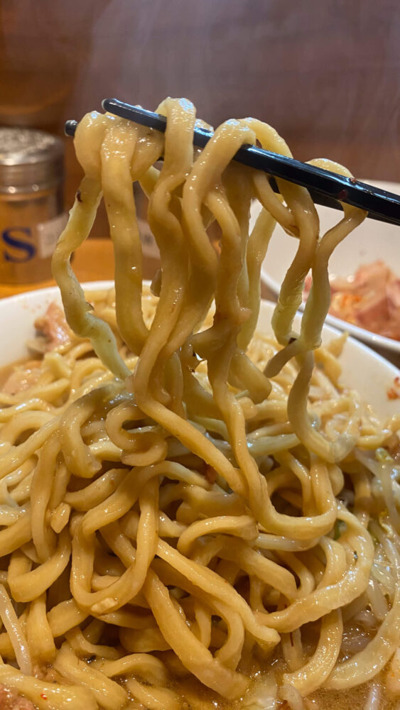 ▲麺はワシワシ系ですが、ド乳化スープと良く絡んで美味しいです。