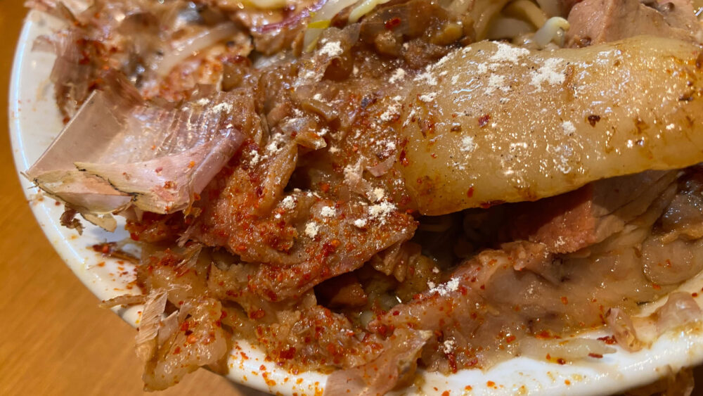 ▲終盤は退避していた鰹節を再び投入して味変。これがバカ旨。鰹節の旨味でブーストされていますね。