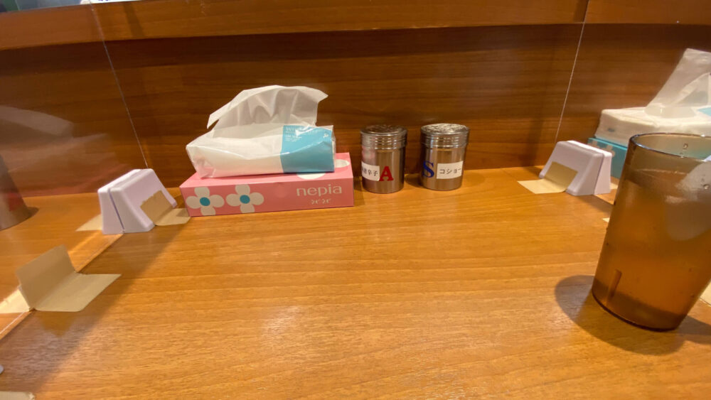 ▲卓上調味料は一味唐辛子とコショーとこちらもシンプル。