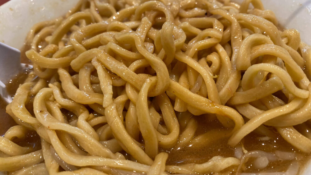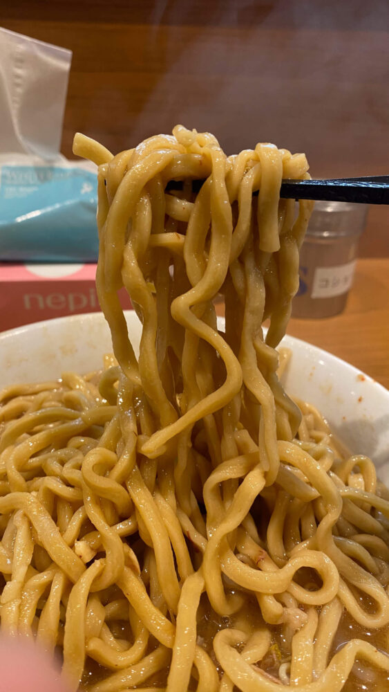 ▲麺はワシワシ系ですすり応えありますねー!ド乳化スープが絡んでめちゃ旨です。