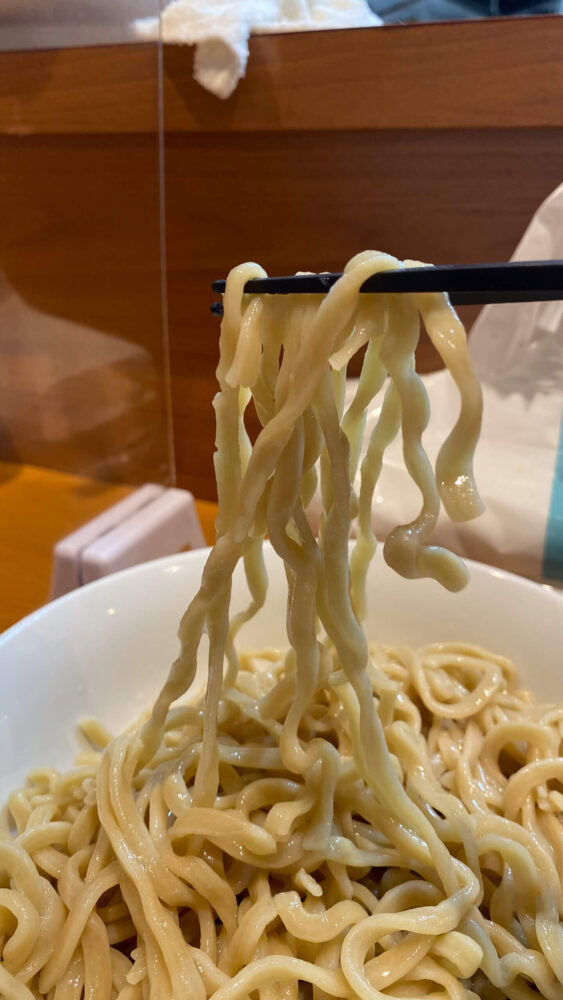 ▲麺は水で締められてツルモチ。弾力もあって美味しいです。
