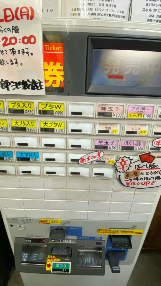 食券購入の前後、小か大か、麺やわめが良いかなど、席に座る前に店員さんからヒアリングがあります。