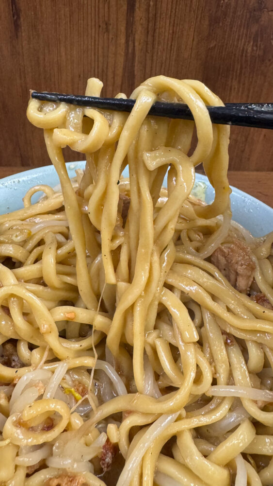 ▲麺は以前よりモッチリ感が増してめちゃ旨。バジマヨ少なめだったので、醤油系のタレの方が強め。
