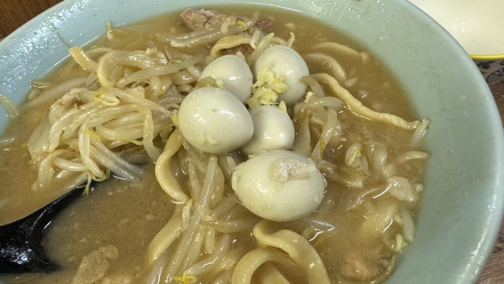 「ブタ入り(ヤサイアブラ)+ブタ増し(2枚)+うずら玉子」を実食!