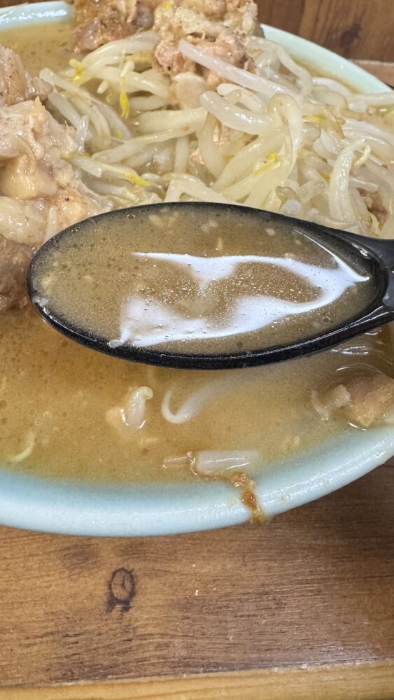 ▲スープはド乳化。豚感強くて美味。以前はライトな微乳化スープの印象でしたが、どっしり感が増した感じ。