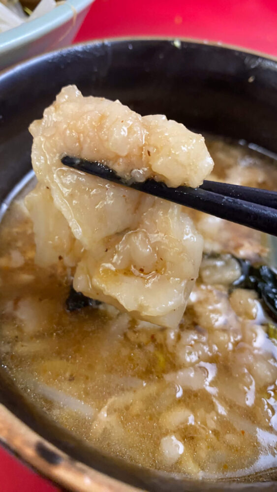 ▲豚は端豚っぽくてしょっぱ旨。ギュチめの食感。3枚しかなかったので食券1枚分通ってなかったかもですがご愛敬。