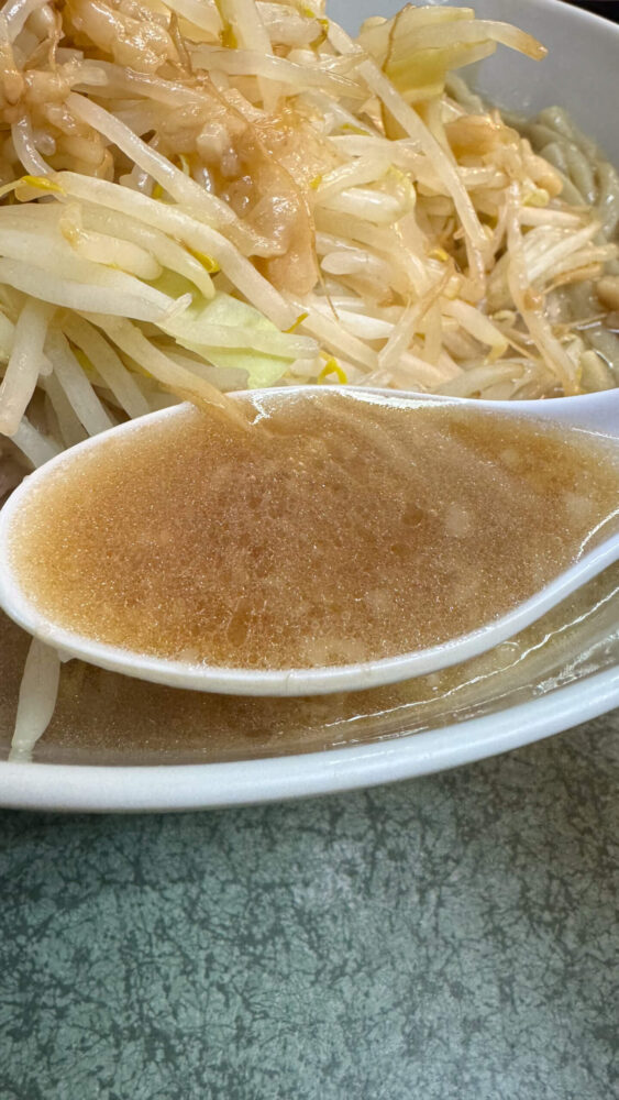▲いつもは微乳化っぽいですが、この日のスープは乳化系寄り。醤油がけっこう立っている印象。