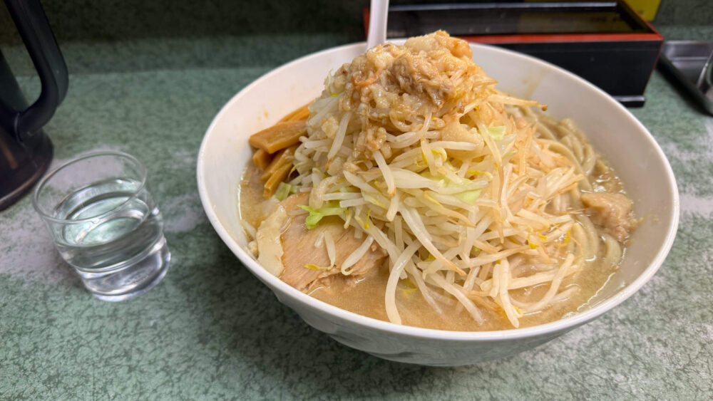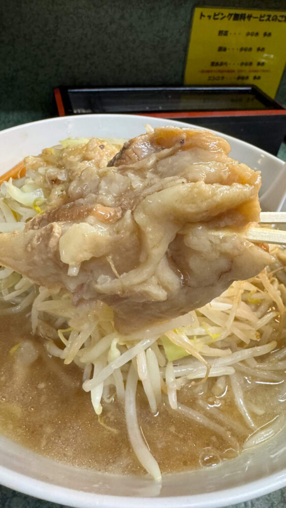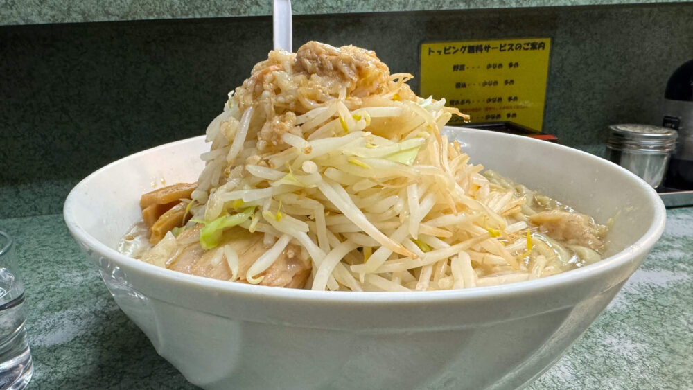 背脂の固まりをコールでき、極太麺が印象的な直系店「ラーメン二郎 新宿小滝橋通り店」(通称:オタジ)。