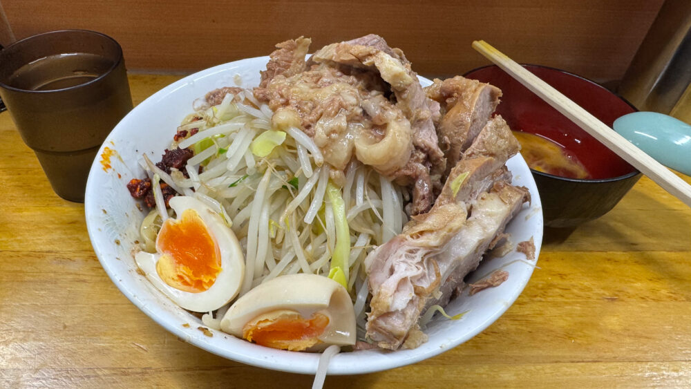 非乳化スープにデロ気味の麺、いろんな食感の豚を楽しめるぶたダブルが特徴的な「ラーメン二郎立川店」(通称:タチジ)。