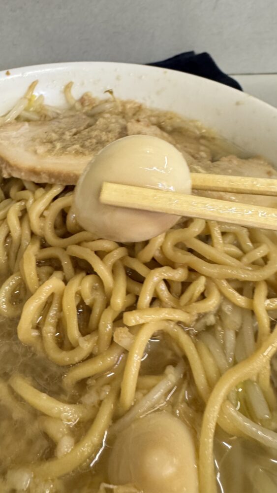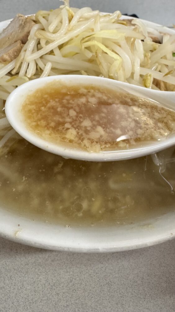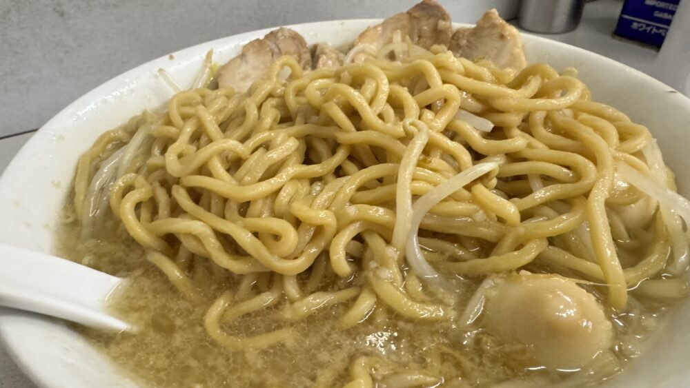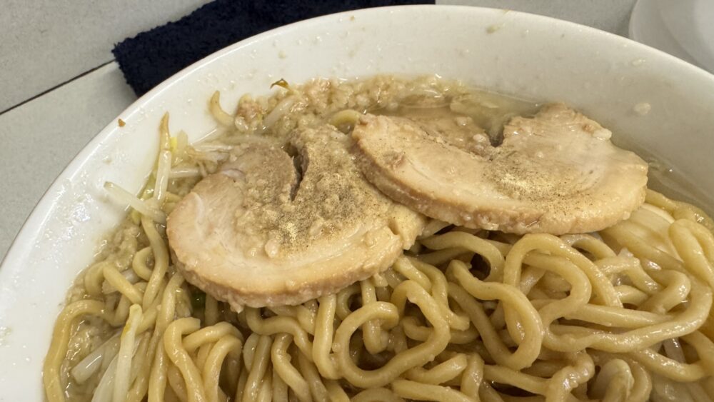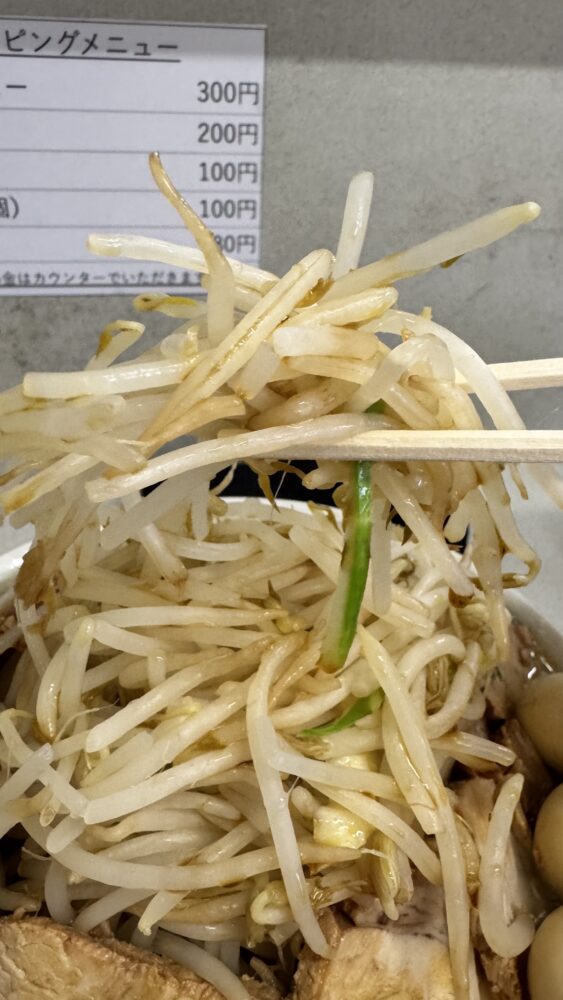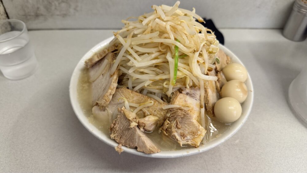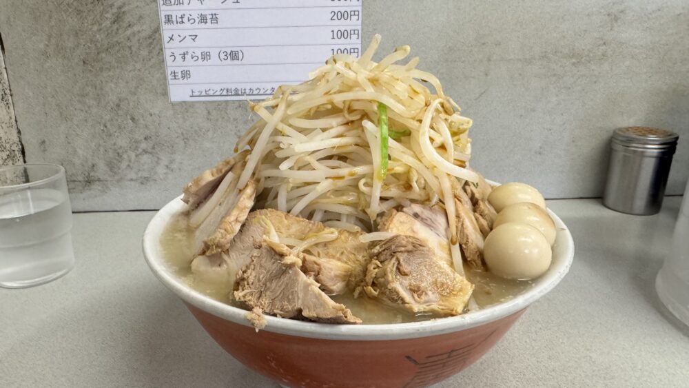 麺量が大盛で300gと少な目なので、小食の方や二郎系初心者向けだと思います。
