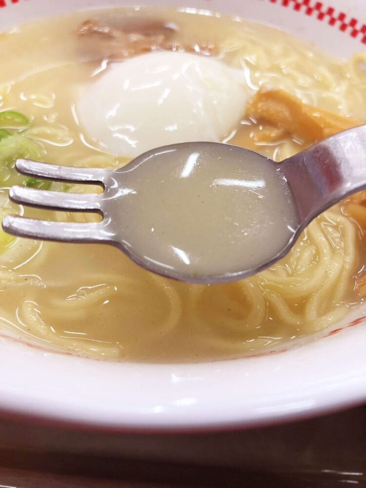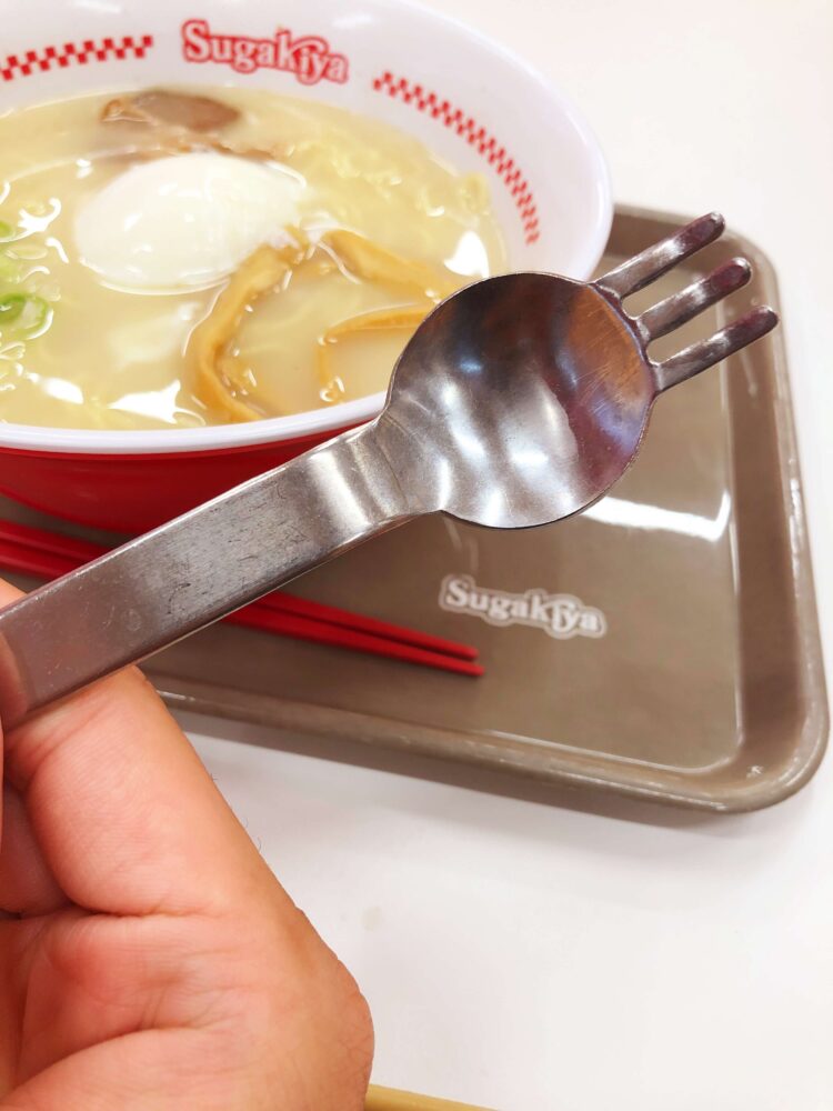 ちなみに、ラーメン以上(?)にインパクトがあるのが独特なスプーン!(ラーメンフォークと言うそうです)