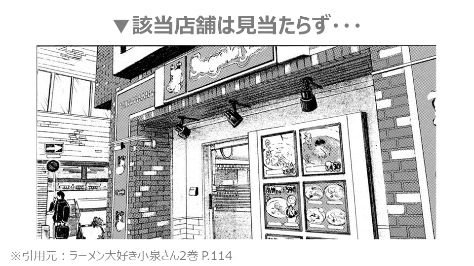 結果的に、たまたま悠ちゃんが選んだお店(Sugakiya)で小泉さんとばったり遭遇するというマンガ的奇跡がこの後に起きますので、ご安心を!