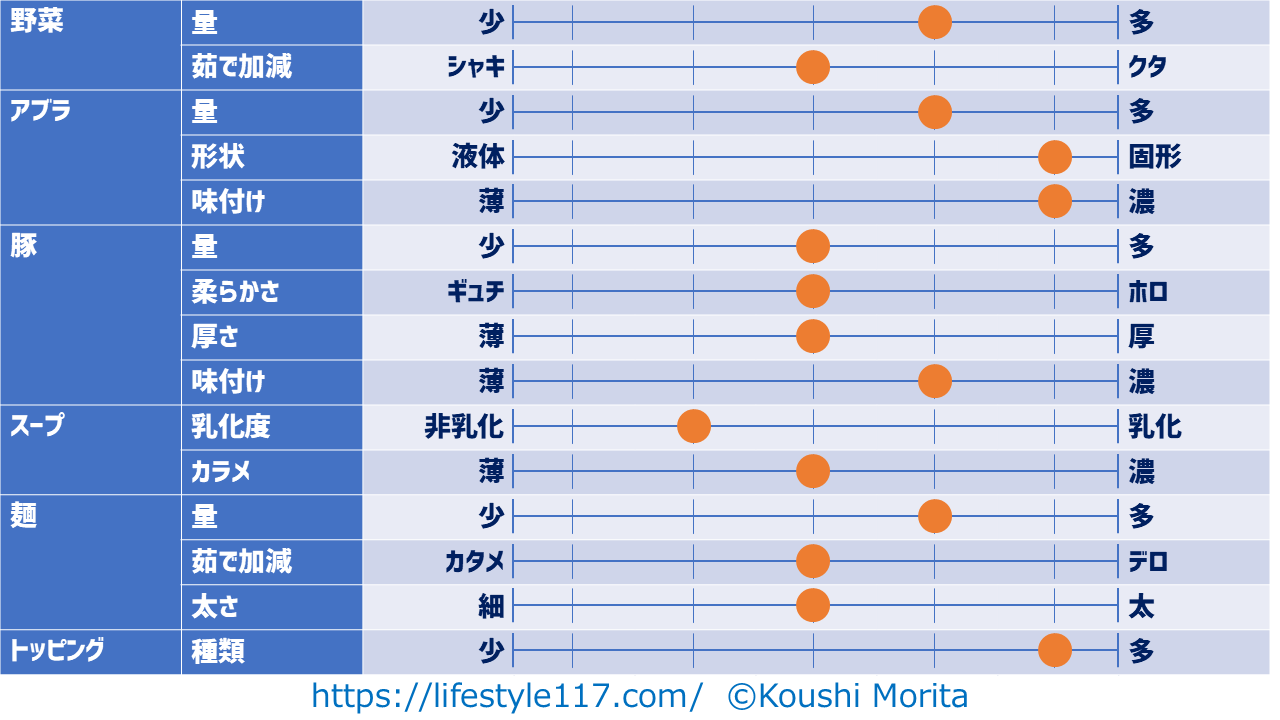 私は原則ニンニクを入れない(妻に怒られるので)ため、項目からニンニクは除外しています。