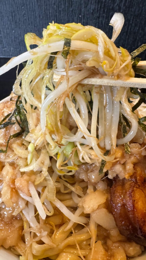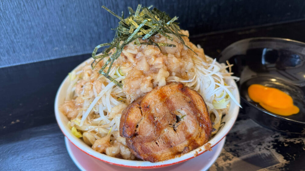 「アブラ麺 中(コールなし)+麺マシ100g+生たまご」を実食!
