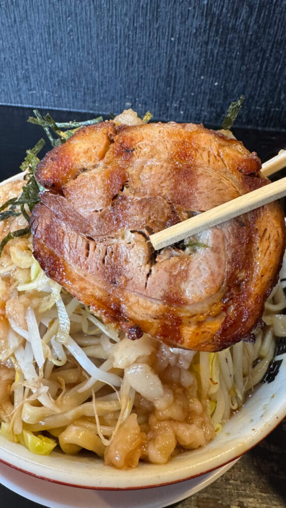 クタ野菜に乳化スープ、プルップルな味付きアブラ、ホロ気味の豚、ゴワゴワ麺で私好みの二郎インスパイア店「ラーメン男盛 東久留米本店」。