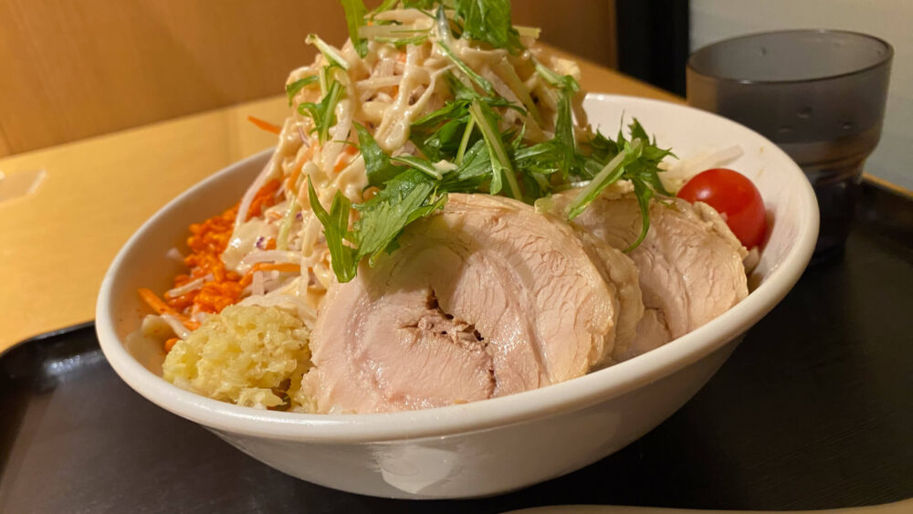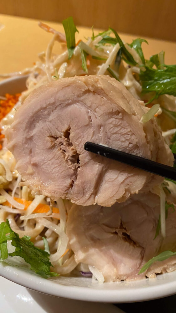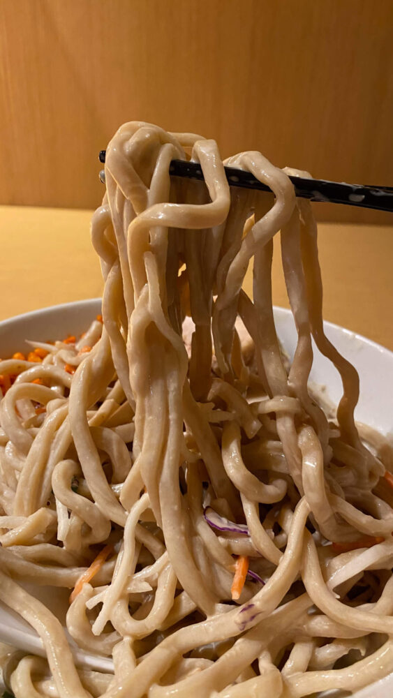 ▲麺は冷たく締められていてワシワシ感強め。ガリマヨが効いて最高に美味しいです。