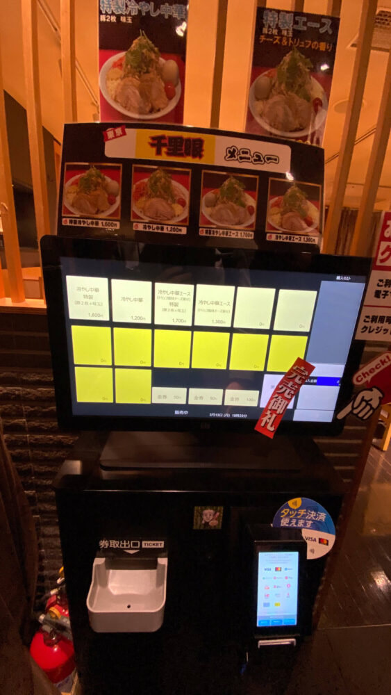 ▲食券機で注文します。現金NGなので電子マネーかクレジットカードでの決済です。