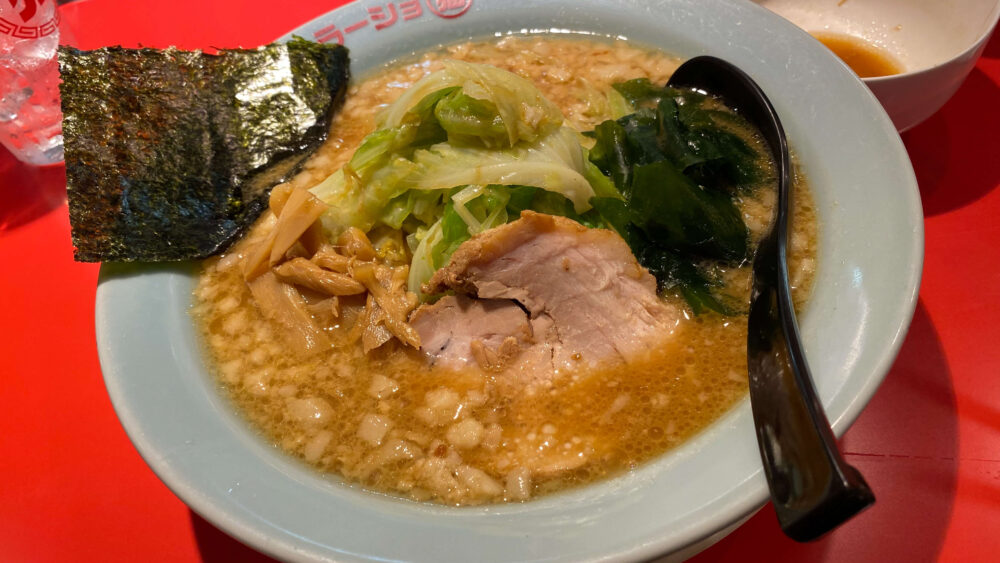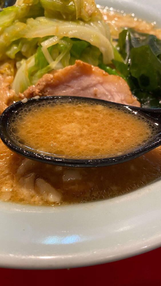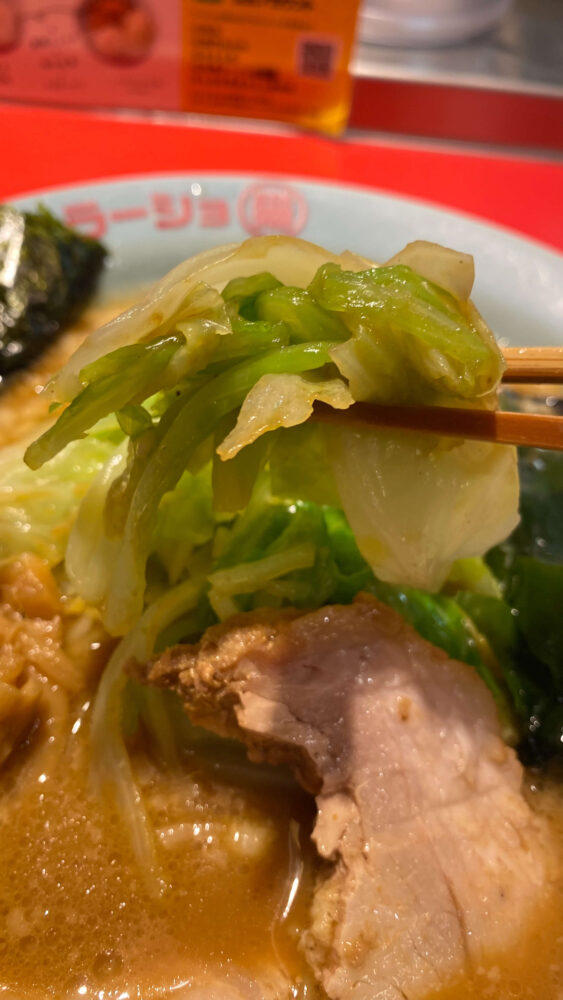 背脂プカプカで美味しそうな味噌ラーメンの上に鎮座するキャベツが見るからに柔らかそう!