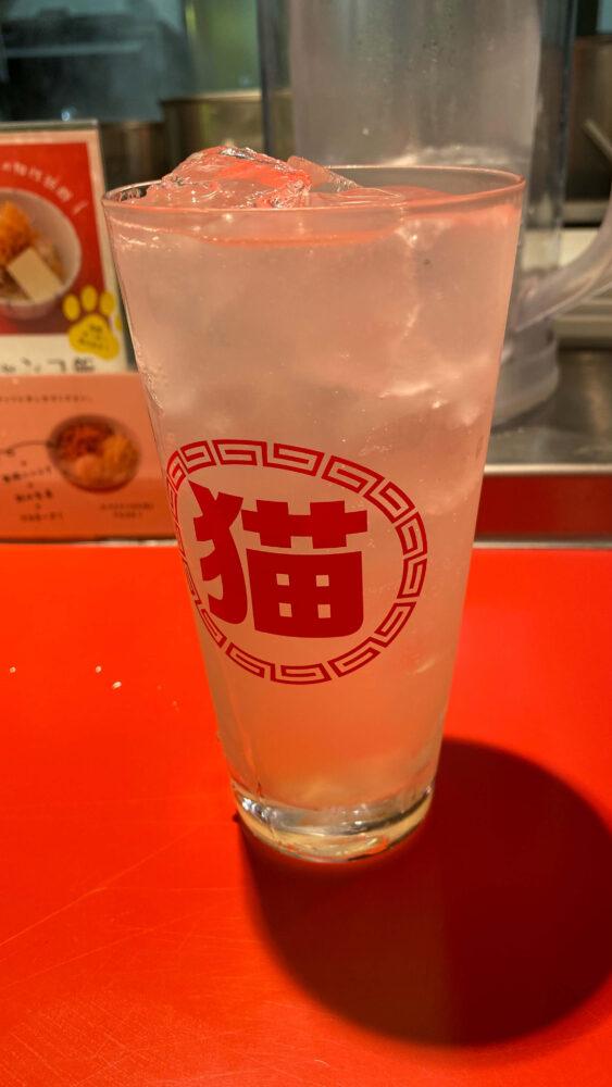 ▲レモンサワーからスピード提供。すっぱうまい。○猫のグラスがかわいいデザイン。